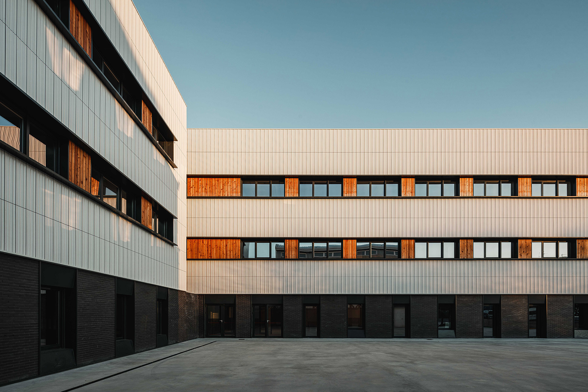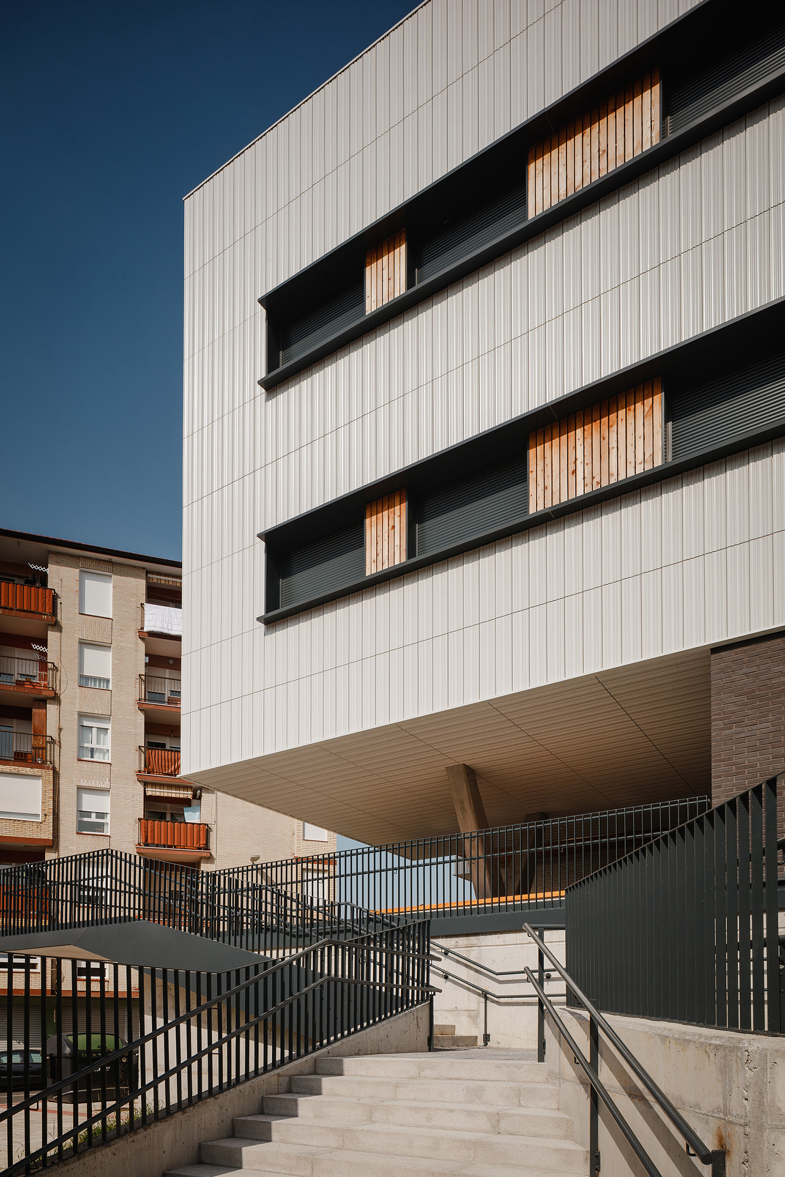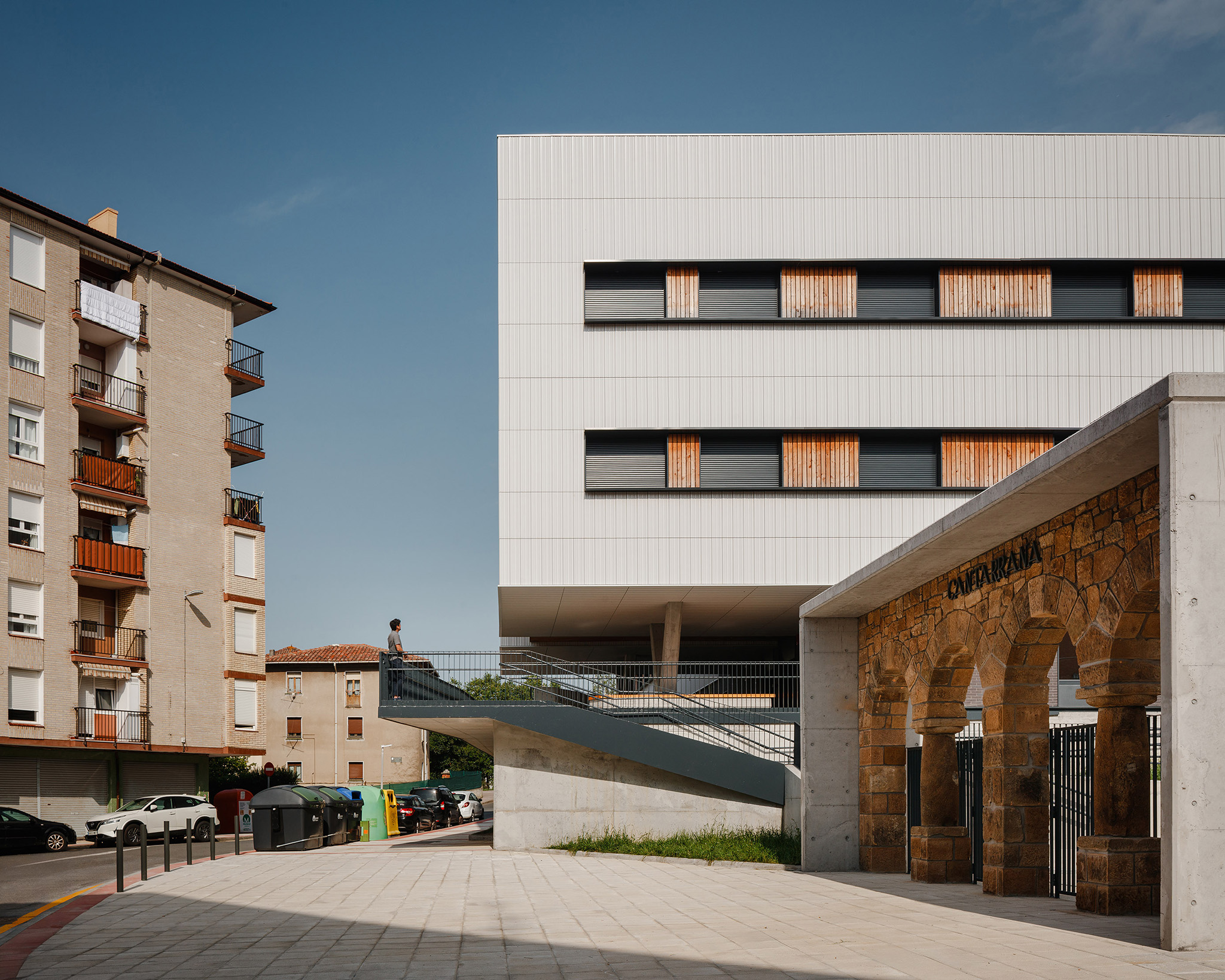 El IES Muskiz parte de una idea clara: crear un edificio eficiente y flexible, capaz de adaptarse a las nuevas formas de aprendizaje. Su arquitectura se organiza en dos volúmenes longitudinales conectados por un espacio central de relación presidido por una gran escalera abierta. Esta disposición promueve la interacción y el movimiento, al mismo tiempo que favorece la iluminación natural y la ventilación cruzada.on una superficie total de 4.191 m², el edificio conjuga materiales naturales y tecnología de vanguardia. La estructura de madera CLT reduce la huella de carbono y aporta un alto confort térmico y acústico.