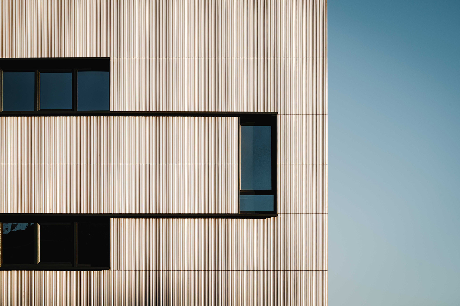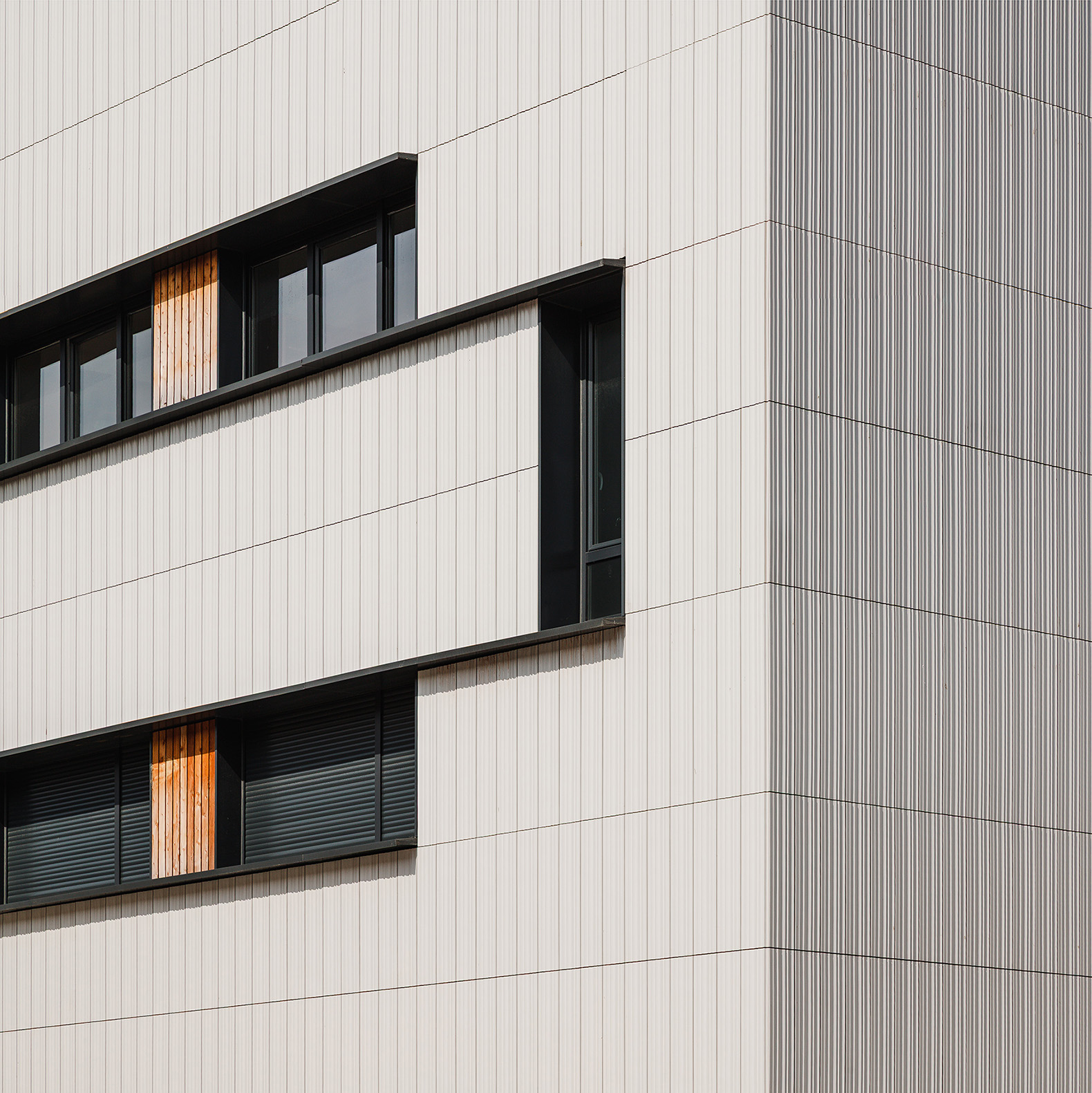 El cerramiento exterior se reviste con una fachada ventilada Faveker GA16, pero en este caso, el sistema se ha llevado un paso más allá. Faveker, en colaboración con el equipo técnico de BAT Architecture, desarrolló una pieza extrusionada especial adaptada al lenguaje del proyecto: una cerámica a medida que transforma la fachada en una superficie vibrante y táctil.